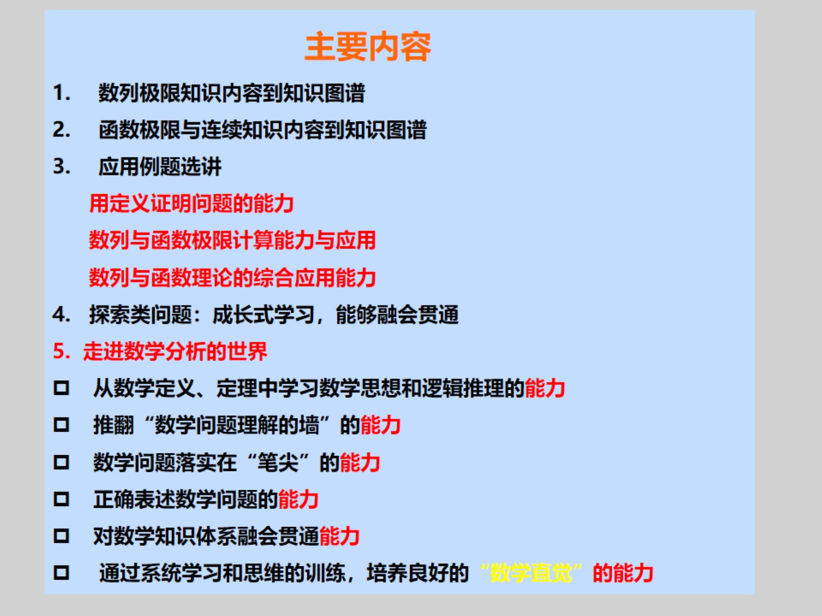 在讲座中,杨老师带领同学们对数列极限基本理论、函数极限与连续基本理论进行了系统的梳理、总结,帮助同学们完成从知识内容到构建知识图谱,强化对数学问题的准确理解。进一步就用定义和否定义证明问题的能力培养、数列与函数极限综合计算能力培养、数列与函数理论的综合应用能力培养三个方面进行生动的讲解,帮助同学们建立成长式思维,对知识体系能够融会贯通。本次讲座取得了很好的效果,和前期开展的阶段性测验一并成为课程团队的特色教学活动。