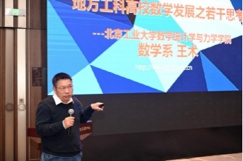 北京工业大学数学统计学与力学学院学术委员会主任王术以北京工业大学数学发展过程中存在的问题和几点经验介绍为例,就寻找探索地方工科院校数学科发展与人才培养之路进行报告。